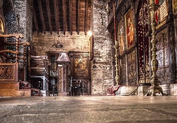 Während der Restauration und Reparatur des Gebäudes im Jahre 1983 entdeckte man in der Klosterkirche Fresken des 11. Jhr., was die Ansicht, das das Gebäude aus dem 14. Jhr. stammt änderte. Der alte Kern der Kirche ist von neueren Anbauten umgeben, die ihre ursprüngliche Form verfälscht und verändert haben. Nur der Altarraum, die Kapelle der Apostel Peter und Paul, die Kuppel mit ihren umgebenden Teilen, sowie die Außenwand im Süden sind vom ursprünglichen Gebäuden. Alles andere stammt aus dem Jahre 1801, als die Kirche vom Thessalonicher Kaufmann Joanis Gouta Kavtantsiolou von Grund auf neu erbaut wurde. Die Südsäulenhalle der Kirche, die kleine Propyläen wurden 1907 angebaut. Architektonisch interessant ist die Stützung der Kuppel an den Wänden des Altarraums und den westlichen Pfosten, ohne das es Säulen gibt, ein Verfahren, das es bei den griechischen Kirchen des 9. Jhr. bis 12. Jhr., vorherrscht. Der Kern der Kirche ist vom kreuzförmigen Typ, so wie bei den Kirchen Agia Ekaterini und Agii Apostoli. Interessant sind auch die Fresken der Kirche die sicher aus der Zeit vor dem türkischen Einfall stammen, sowie die vielen marmornen Wappen, tragbaren Ikonen und andere einzigartige Kostbarkeiten des Klosters. |