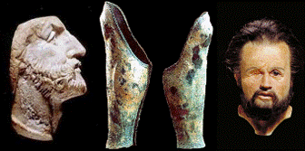 2.) Das nächste Indiz, ist das im Grab gefundene vergoldende Bonze Beinschienenpaar, wobei das Linke zweieinhalb cm kürzer ist. Aus Überlieferungen ist bekannt das Philipp lahmte. |