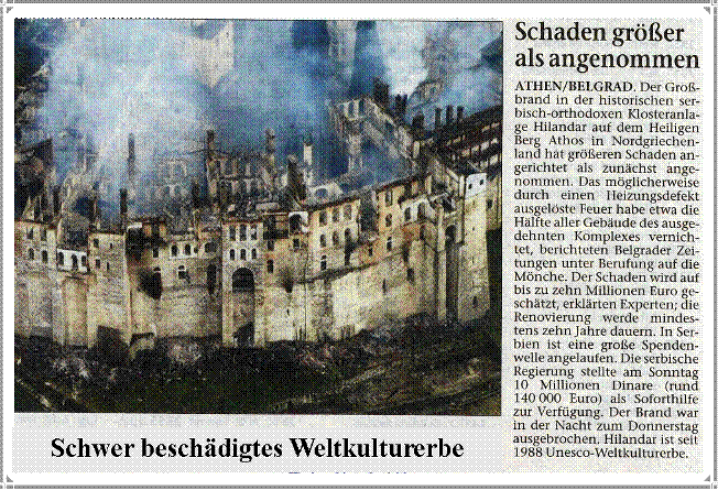 Feuer im Kloster Chilandariou in der Nacht vom 3. auf 4. März 2004