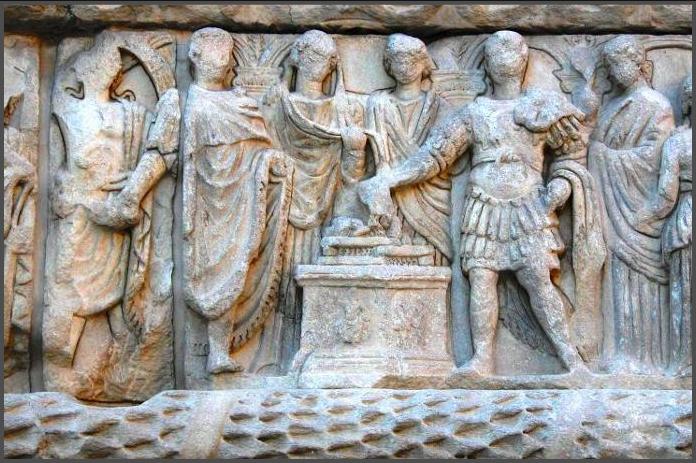 Die Beschädigungen der Reliefs können auf menschliches Einwirken zurückgeführt werden. Denkbar wäre hierbei eine von Christen durchgeführte Entstellung der Kaiserdarstellungen (unkenntlich machen der Gesichter) auf den Reliefs, fand doch unter Diokletian die letzte große und zentral gesteuerte Christenverfolgung statt. |