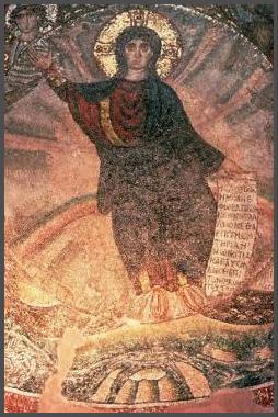 Das Mosaik in der Kuppel von der Apsis, zeigt den bartlosen Christus der dem Profeten Jesekiel erschienen ist. Christus sitzt auf einem vielfarbigen leuchtenden Bogen. Zur Zeit der Ikonenkämpfe wurde das Kunstwerk mit Rinderhäuten bedeckt und durch Zufall erst währen der Regierungszeit des Leontos Armenios ( 813-820 ) wieder entdeckt. Von der Zeit an wurde das Kloster umbenannt und bis zur Türkenherrschaft Christus Sotirios benannt. Zur Zeit der Osmanen wurde das Kunstwerk mit Mörtel verputzt und erst 1921 wieder freigelegt. Die Kirche wurde abermals umbenannt und erhielt den Namen Osios David einen Heiligen und Asketen der aus Thessaloniki stammte. |