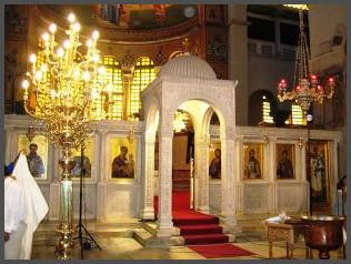 Es handelt sich um ein holzgedecktes Gebäude ohne Kuppel, mit den Grundriss maßen 43,58 m. Länge und 33 m. Breite. Innen wird sie durch 4 marmorne Säulenreihe in 5 Schiffe unterteilt, während ein 6. Schiff den fünf anderen horizontal vorgelagert ist, in dem Altar und das Allerheiligste sind. Das Mittelschiff breiter als die vier übrigen, ist erhöht und beherrschend. Die Seiten sind stufenweise überdacht und geben so die Möglichkeit zur Bildung von vielförmigem Fenster an den Seitenwänden. ( ein bis mehrflügelige Fenster ). Im größten Teil des Bauwerkes ist die alte Mauerfugung aus ungleich zusammengefügten Steinen und Backsteinen erhalten, die kunstvolle Bogen und Fenster bildet. Als 342 nach Chr. Konstantin der Große das Christentum zur Staatskirche erklärte, bauten die Thessalonicher schnell zu Ehren ihres Märtyrers eine kleine Kirche ( Oikiskos ). Sie lag in der Nähe der Keller eines verlassenen römischen Bades, neben dem Stadion der Stadt. Dort soll nach der Überlieferung auch das Martyrium des Heiligen stattgefunden haben und dort soll er auch begraben sein. Es dauerte nicht lange und die kleine Kirche war das Zentrum der Verehrung des Heiligen. nicht nur für die Thessalonicher, sondern für die gesamte Christenheit. Viele Gläubige kamen nach Thessaloniki um am Grab des Heiligen zu beten und von der aus dem Grab fließende Myrrhe, von schweren Krankheiten geheilt zu werden. Unter den Pilgern war auch der Gouverneur von Illyriens Leontios aus Sirmio, der von seiner Krankheit geheilt wurde. Aus Dank ließ Leonitios dem Heilligen 413 an Stelle der kleinen Kirche eine große neue erbauen. Das Gebäude beherrschte ganz Thessaloniki, da es am Fuß des Hügels der Oberstadt lag. Die Kirche mit verschiedenen Reparaturen und Umbauten, blieb bis zum großen Brand 1917 erhalten. Sie wurde dann abgerissen um später in ihrer ursprünglichen Form mit erhaltenen Originalteilen wieder aufgebaut zu werden. |
